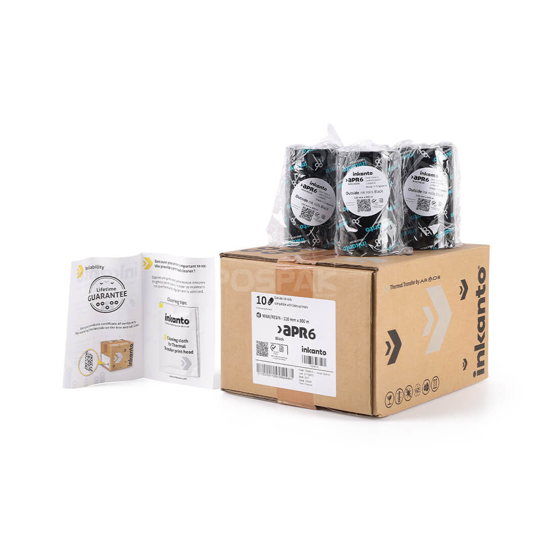 ARMOR AXR7 Resin Ribbon หน้ากว้าง 76 มิลลิเมตร ความยาว 300 เมตร ขนาดของแกน 1 นิ้ว การเข้าม้วนแบบ F/O สีดำ สามารถใช้กับเครื่องพิมพ์สติ๊กเกอร์บาร์โค้ดได้ทุกยี่ห้อ ที่มีระบบในการพิมพ์เป็น Thermal Transfer ใช้กับลาเบลหรือสติ๊กเกอร์ แบบ PET Film, PVC ,PP ติดทนทานไม่หลุดลอกง่าย