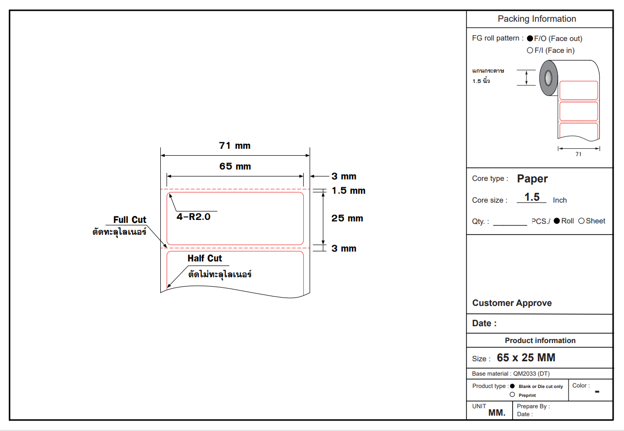 ST.DT Size 50 x 40 mm (5 x 4 cm) Sticker แกน 1.5 นิ้ว (สติ๊กเกอร์ความร้อน ไม่ต้องใช้หมึกริบบอน)