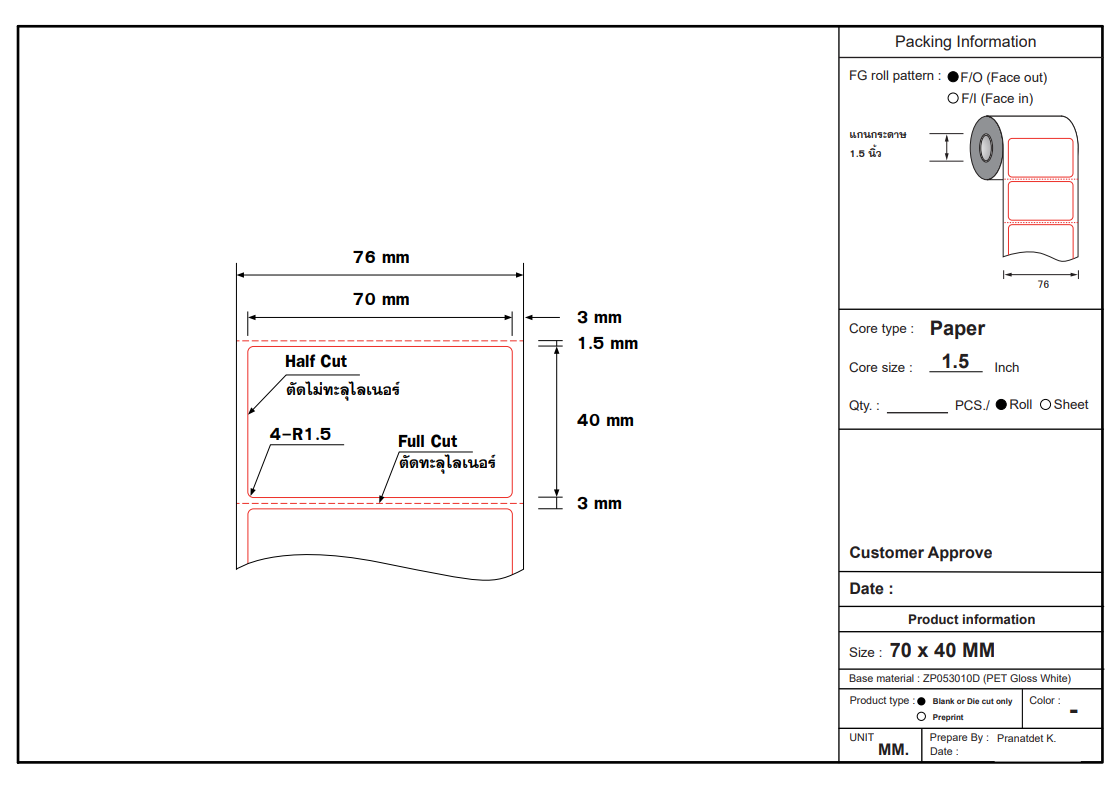 ST.PET Size 70 x 40 mm (7 x 4 cm) สติ๊กเกอร์ PET (ใช้ร่วมกับ Wax-Resin Ribbon)