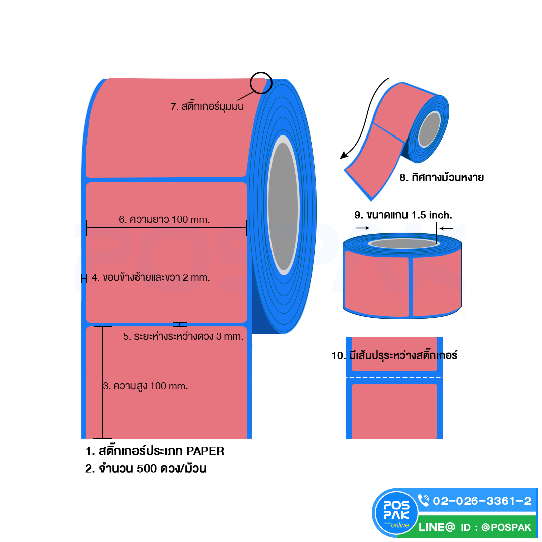 ST.TT Size 103 x 45 mm (10.3 x 4.5 cm) Sticker แกน 3 นิ้ว สติ๊กเกอร์กระดาษ กึ่งมันกึ่งด้าน (ใช้ร่วมกับ Wax Ribbon หรือ Wax Resin Ribbon)