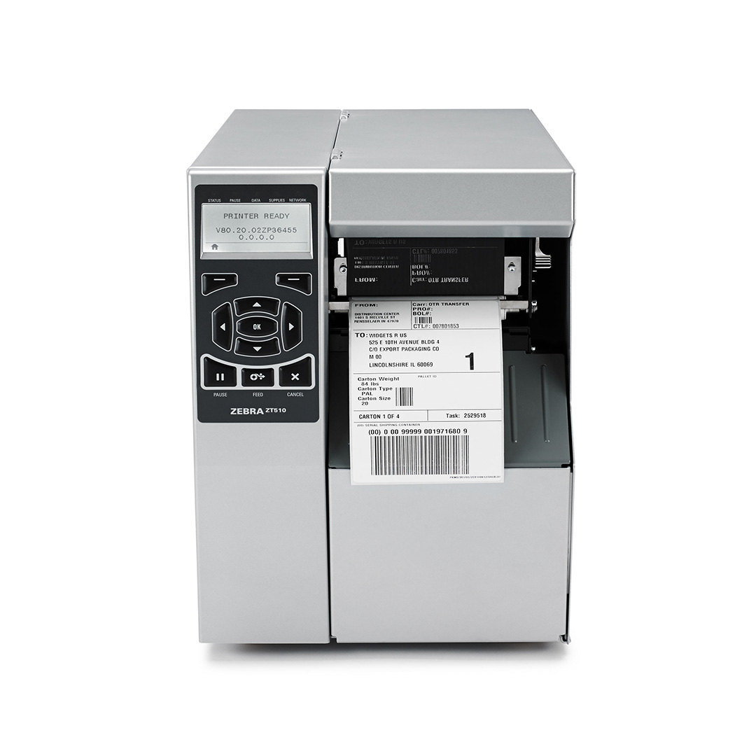 เครื่องพิมพ์บาร์โค้ด Zebra ZT510 Industrial Printer Barcode เครื่องทำบาร์โค้ดที่เหมาะสำหรับอุสาหกรรมขนาดกลางที่ทำงานต่อเนื่อง ตัวเครื่องได้รับการออกแบบโครงสร้างที่ทนทานและมีลักษณะแบบเปิดเพื่อให้ง่ายต่อการปรับเปลี่ยนบำรุงรักษาระบบการพิมพ์แบบถ่ายโอนความร้อนผ่านผ้าหมึก (Thermal Transfer) และแบบถ่ายโอนความร้อนโดยตรง (Direct Thermal) ตัวเครื่องพิมพ์สามารถพิมพ์งานขนาดใหญ่ที่มีความกว้างสูงสุดได้ถึง 4.09 นิ้ว มีให้เลือกถึง 2 รุ่นคือ 203 dpi/300 dpi สามารถเลือกใช้ได้ตามสถานงานพิมพ์ สามารถพิมพ์ได้หลายภาษาและหลายแบบอักษรใช้งานง่ายด้วยจอ LCD 3.5 นิ้ว  เชื่อมต่อได้กับทุกระบบปฏิบัติการสามารถเชื่อมต่อกับเน็ตเวิร์คด้วยอุปกรณ์ มาตรฐาน เชื่อมต่อกับพีซีด้วย USB, RS-232 Serial, Bluetooth 4.0 และรองรับการเชื่อมต่อกับอุปกรณ์อื่น ๆ ด้วย Serial Port