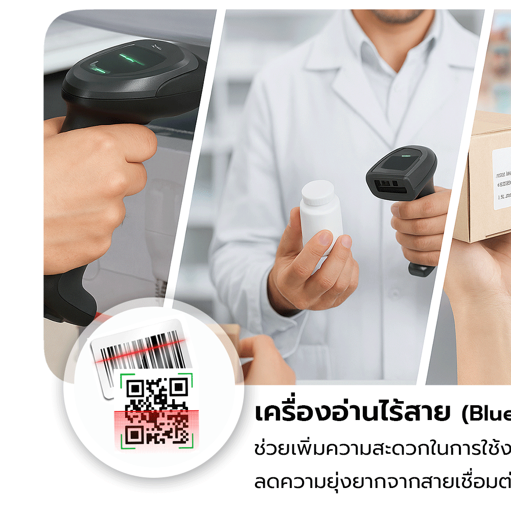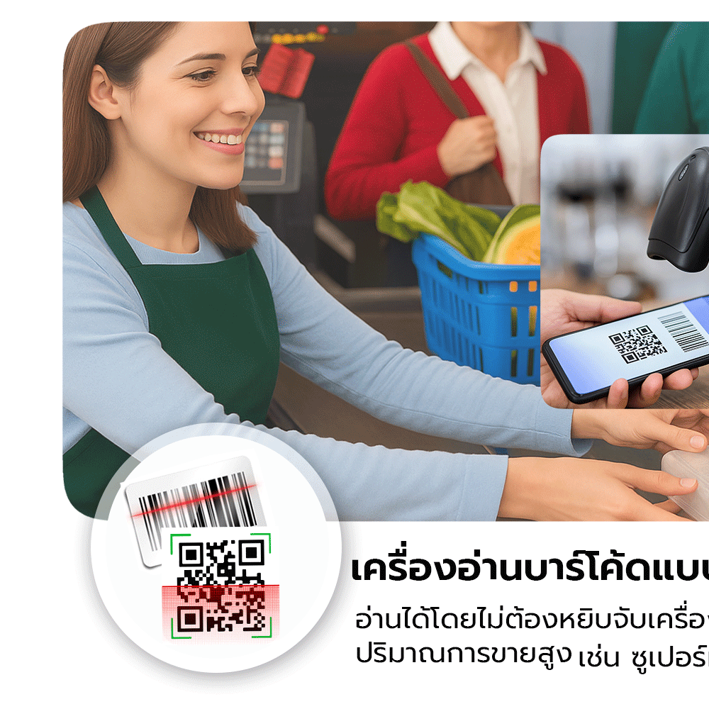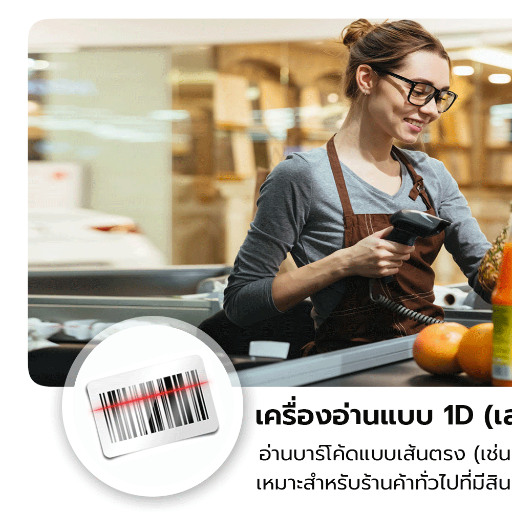 - อ่านบาร์โค้ดได้ทั้งแบบ 1D และ 2D (เช่น QR Code)