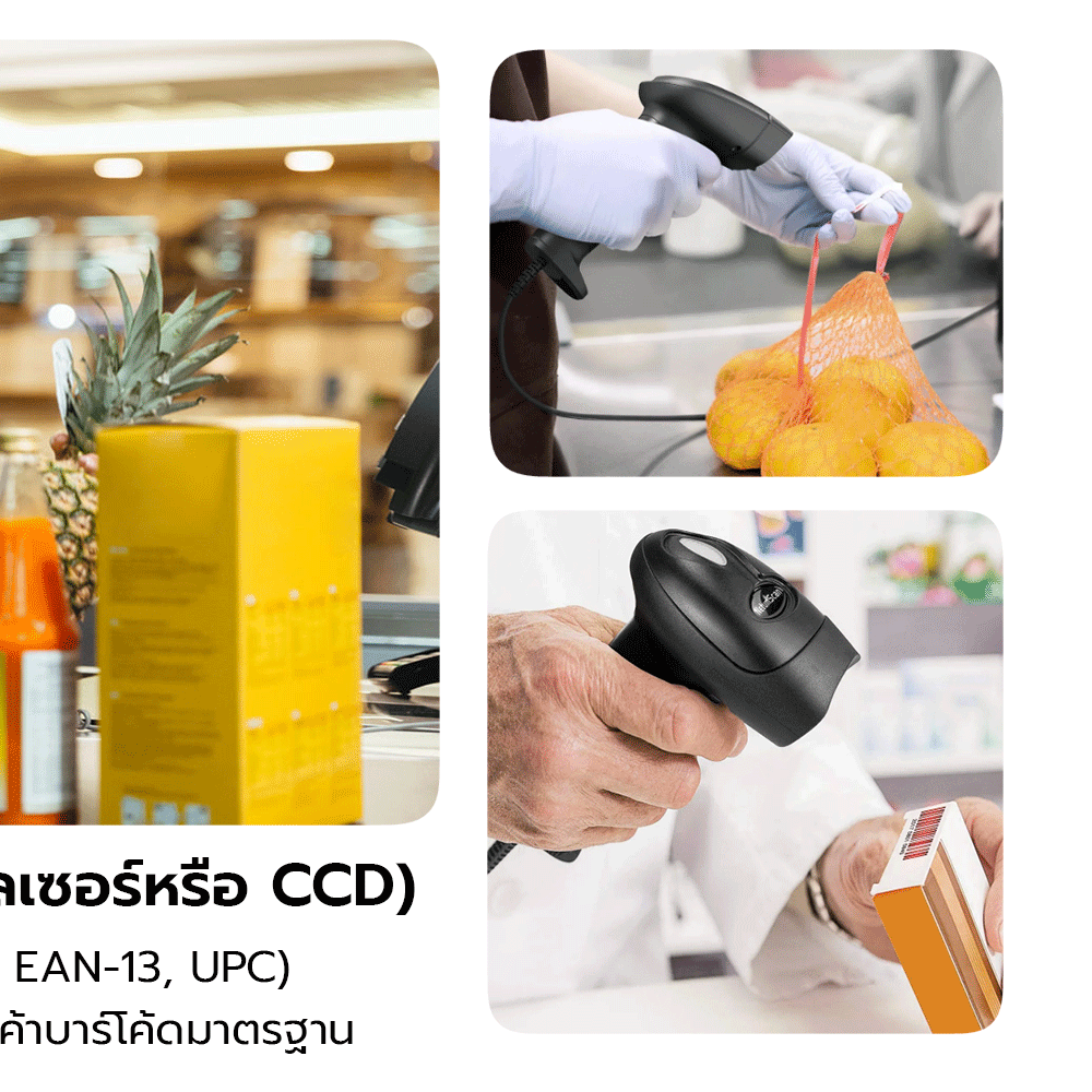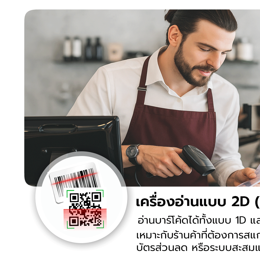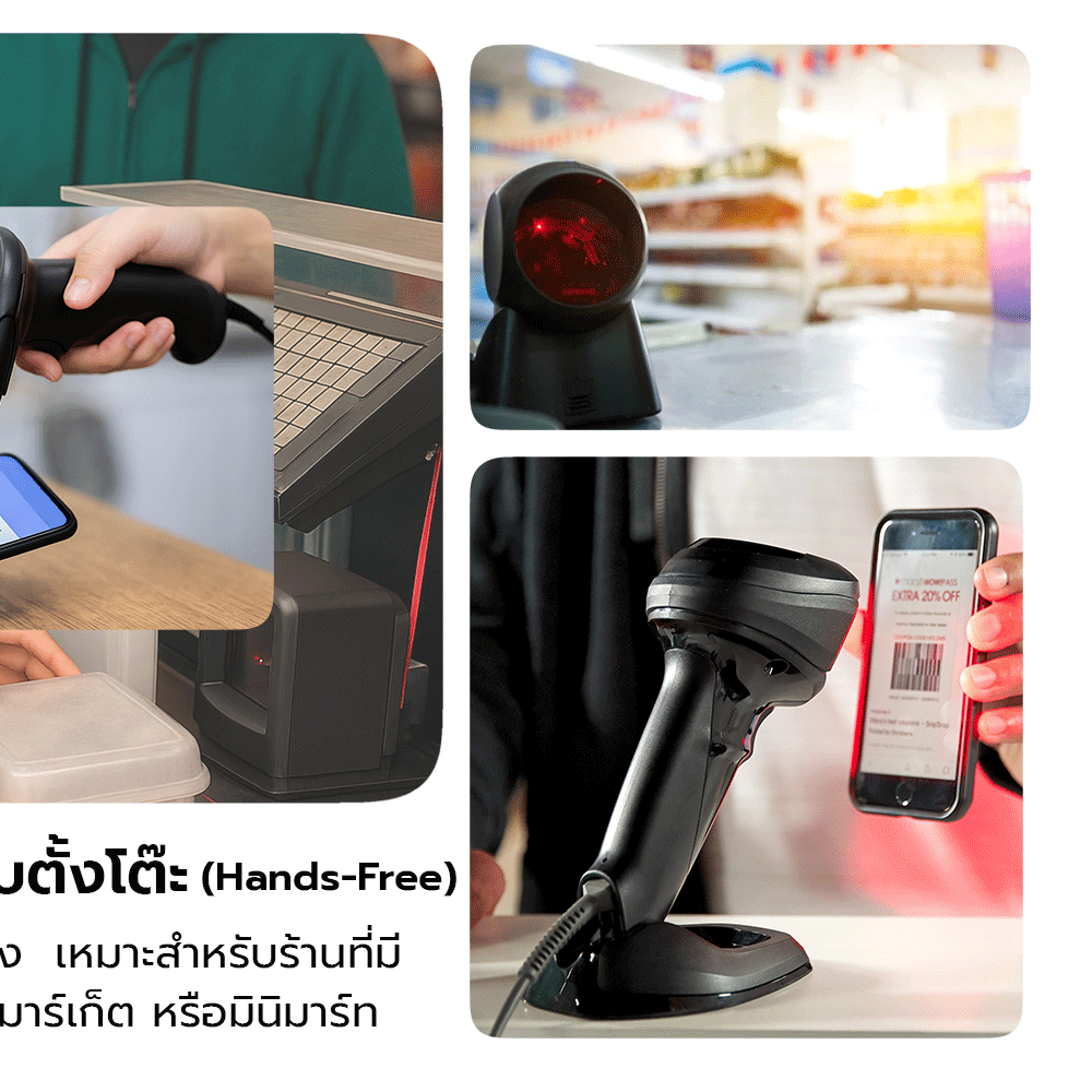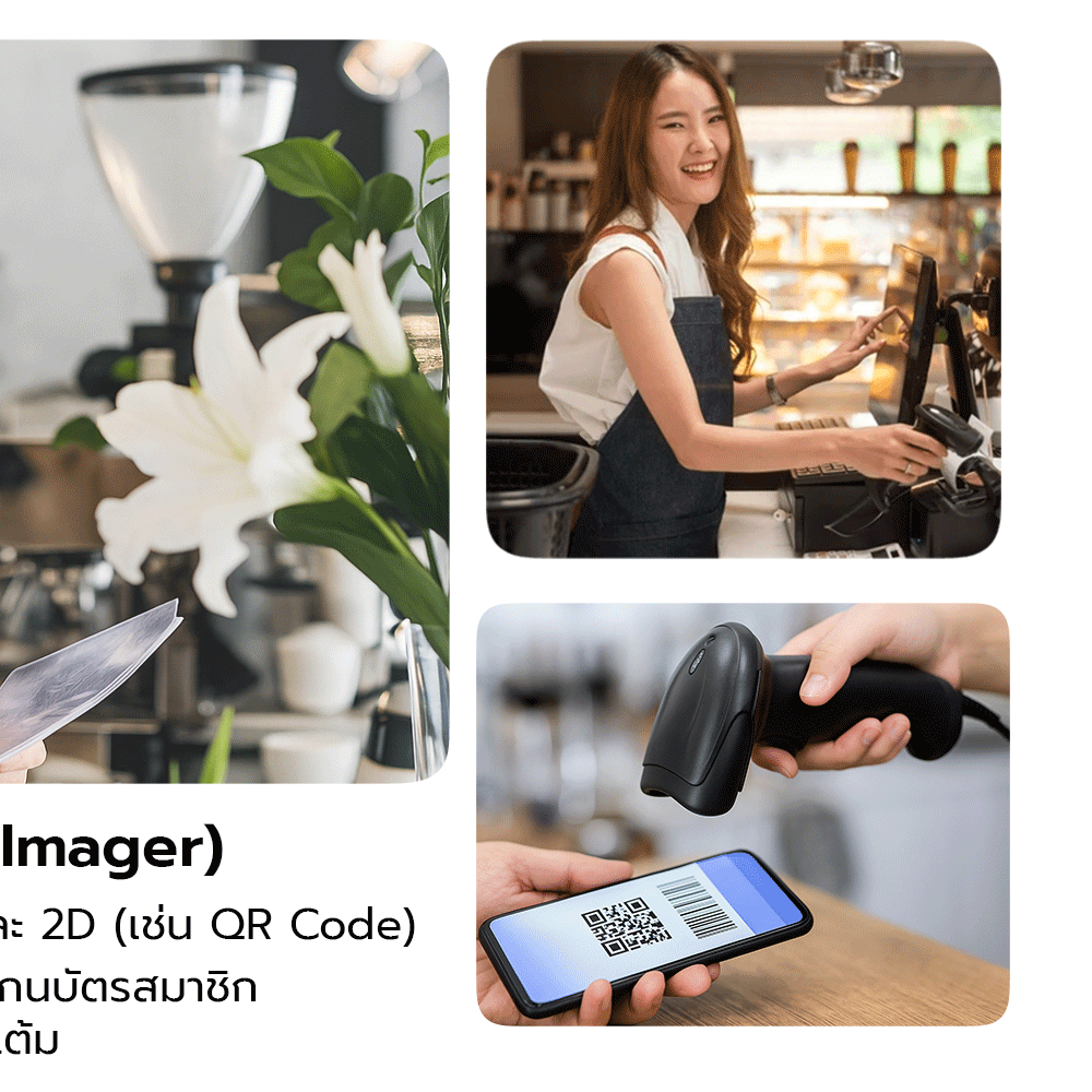 - เหมาะกับร้านค้าที่ต้องการสแกนบัตรสมาชิก บัตรส่วนลด หรือระบบสะสมแต้ม