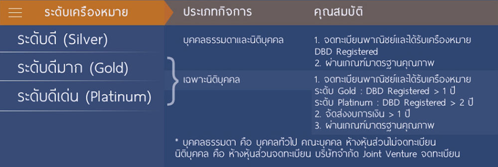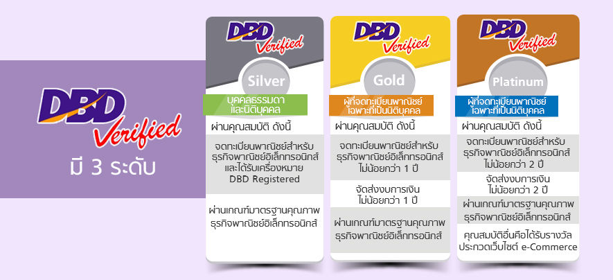จำแนกเครื่องหมาย DBD Verified 3 ระดับ คือ Silver, Gold และ Platinum ดังนี้
