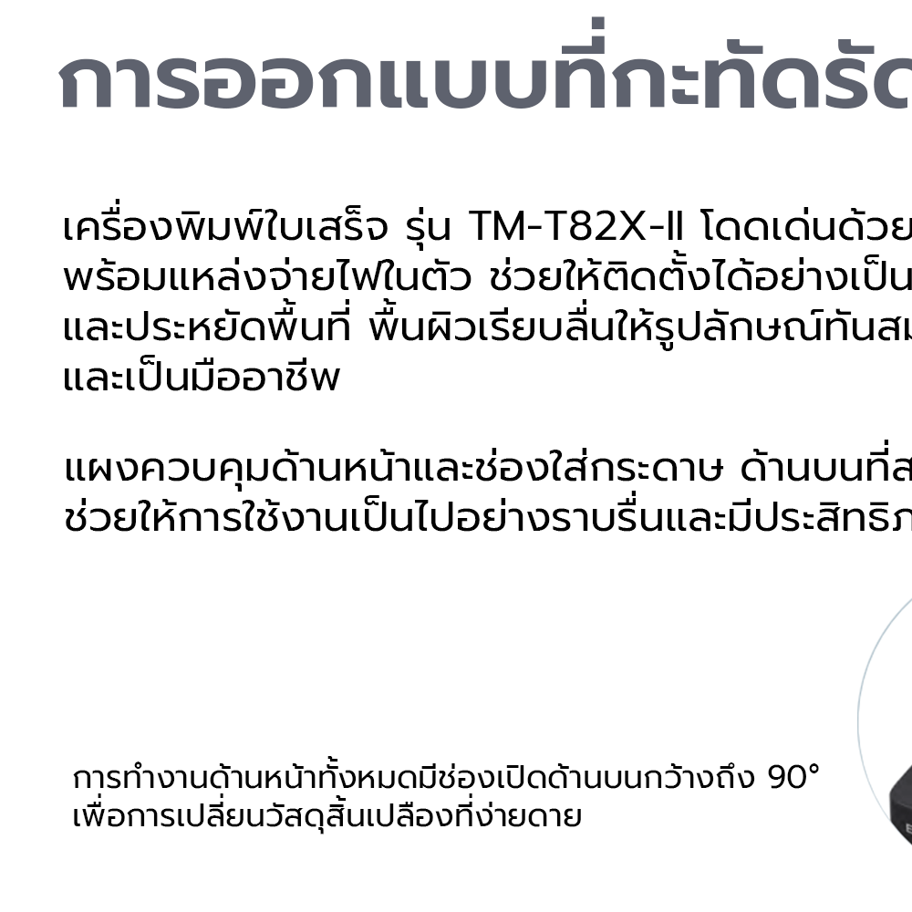 CUSTOM P3L เครื่องพิมพ์ใบเสร็จความร้อน ความละเอียดในการพิมพ์ 203dpi ความเร็วในการพิมพ์ 250 มิลลิเมตร/วินาที รองรับกระดาษหน้ากว้าง 80 และ 58 มิลลิเมตร ด้วยการออกแบบที่กะทัดรัดและแข็งแรง จึงปรับให้เข้ากับสภาพแวดล้อมของจุดขาย ซึ่งโดดเด่นในเรื่องความน่าเชื่อถือและคุณภาพการพิมพ์ มีหัวพิมพ์ที่มีอายุการใช้งานยาวนานและมีคัตเตอร์สำหรับการตัดใบเสร็จอัตโนมัติ มาพร้อมการเชื่อมต่อ USB + LAN + SERIAL เหมาะสำหรับร้านค้าปลีกและการบริการ