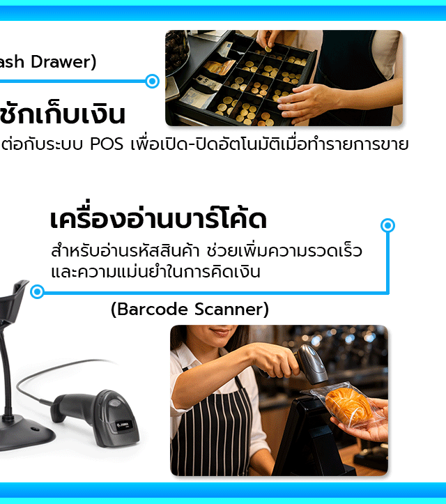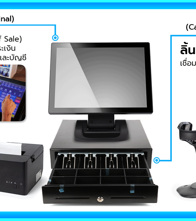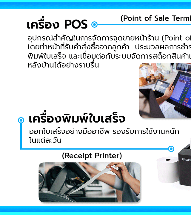 เครื่องพิมพ์ใบเสร็จ (Receipt Printer): พิมพ์ใบเสร็จให้ลูกค้าอย่างรวดเร็ว
