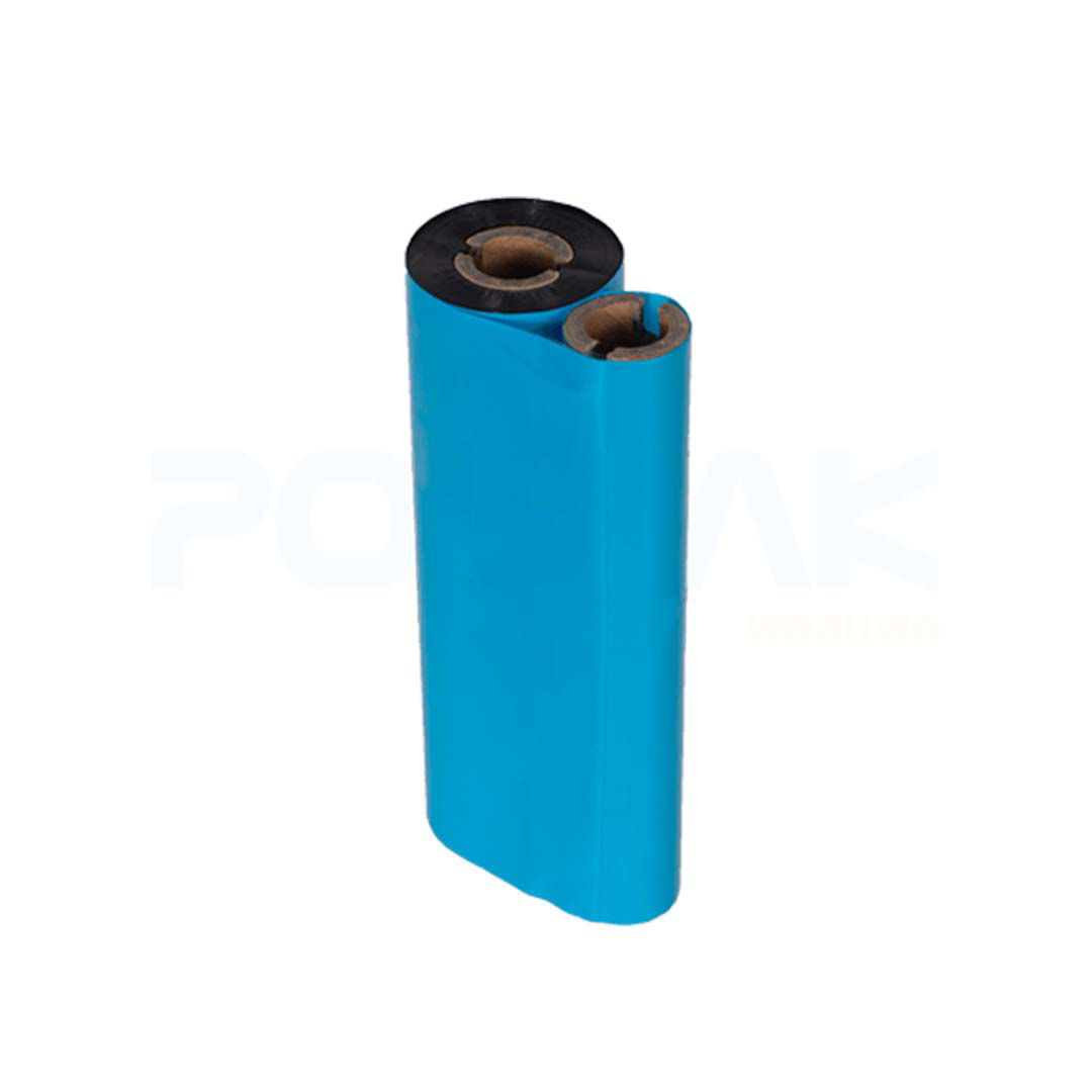 POSPAK M110A Blue Wax Ribbon Size 110mm X 300m F/O แกน 1 นิ้ว Wax Ribbon หมึกริบบอน (PN:M110A-WAX-BLUE) ใช้กับลาเบลหรือสติ๊กเกอร์ เนื้อกึ่งมันกึ่งด้าน แบบ Thermal Transfer