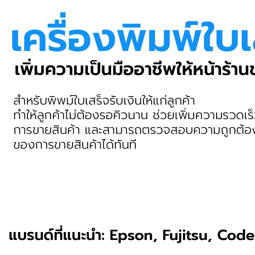 สำหรับพิพม์ใบเสร็จรับเงินให้แก่ลูกค้า ทำให้ลูกค้าไม่ต้องรอคิวนาน ช่วยเพิ่มความรวดเร็วการขายสินค้า และสามารถตรวจสอบความถูกต้องของการขายสินค้าได้ทันที