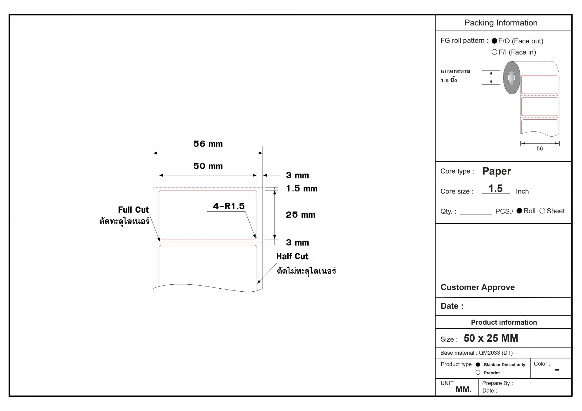 สติ๊กเกอร์ดวงเปล่า แบบกึ่งมันกึ่งด้าน Direct Thermal (DT) ขนาด 2.5 x 3.5 เซนติมเตร (25 x 35 มิลลิเมตร) แกน 1.5 นิ้ว ไม่ต้องใช้หมึกริบบอน เหมาะสำหรับ สติ๊กเกอร์จ่าหน้าซอง ฉลากสินค้าต่างๆ งานขนส่ง เป็นต้น ถ้าลูกค้าต้องการขนาดอื่น สามารถสั่งผลิตตามขนาดที่ลูกค้าต้องการได้
