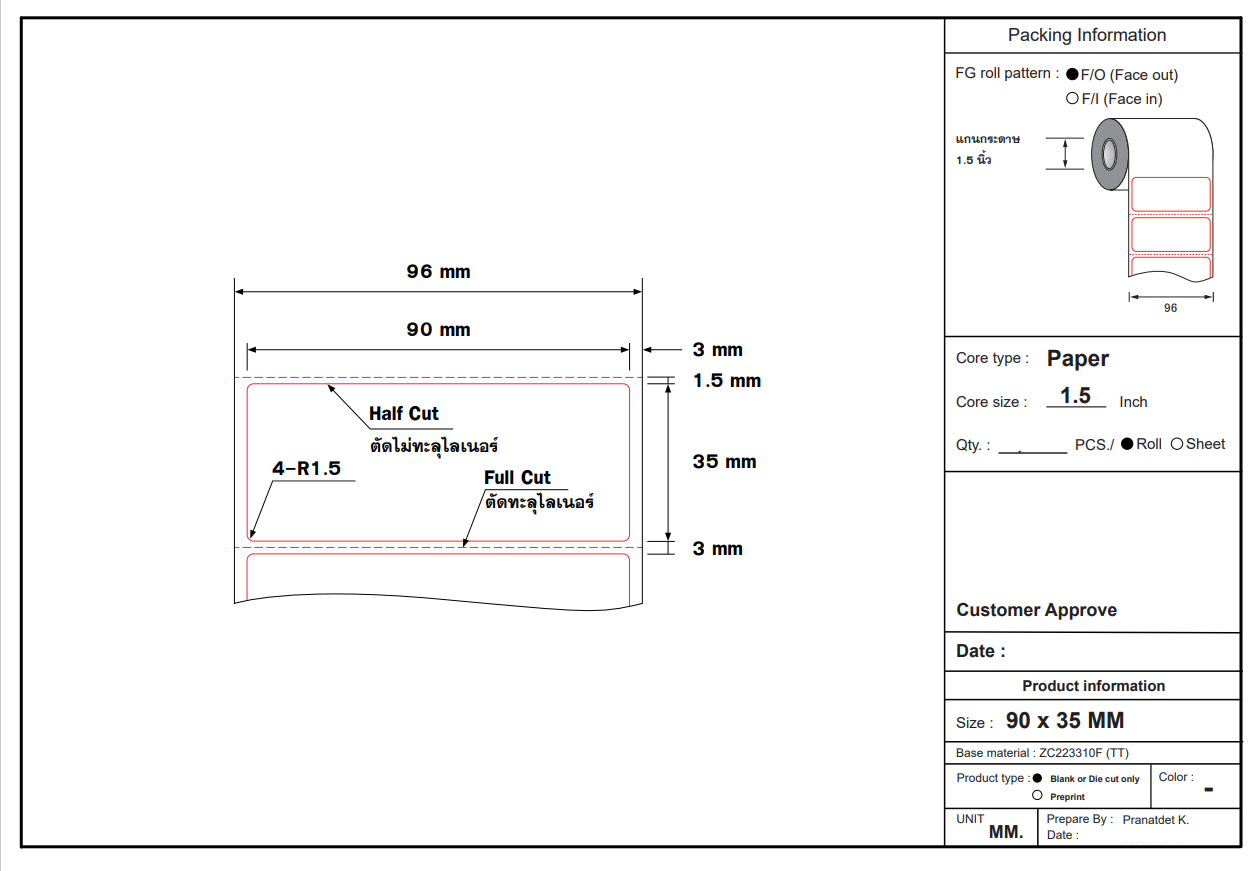 ST.TT Size 55 x 50 mm. (55 x 50 cm) Sticker แกน 1.5 นิ้ว สติ๊กเกอร์กระดาษ กึ่งมันกึ่งด้าน (ใช้ร่วมกับ Wax Ribbon หรือ Wax Resin Ribbon)