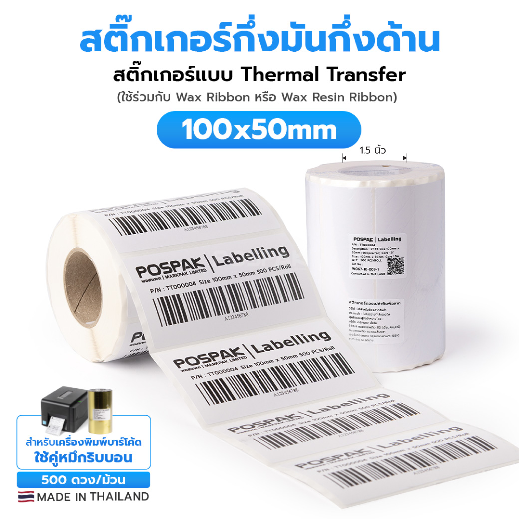 สติ๊กเกอร์ดวงเปล่า แบบกึ่งมันกึ่งด้าน Direct Thermal (DT) ขนาด 50 x 70 มิลลิเมตร แกน 1.5 นิ้ว ไม่ต้องใช้หมึกริบบอน เหมาะสำหรับฉลากสินค้าขนาดกลางถึงใหญ่, ฉลากบาร์โค้ดและ QR Code, ป้ายราคาสินค้าพร้อมข้อมูล, สติกเกอร์คำเตือนและป้ายความปลอดภัย เป็นต้น ถ้าลูกค้าต้องการขนาดอื่น สามารถสั่งผลิตตามขนาดที่ลูกค้าต้องการได้
