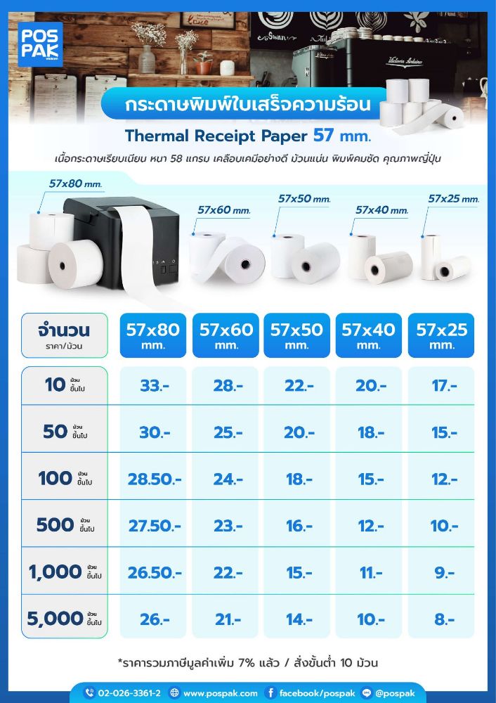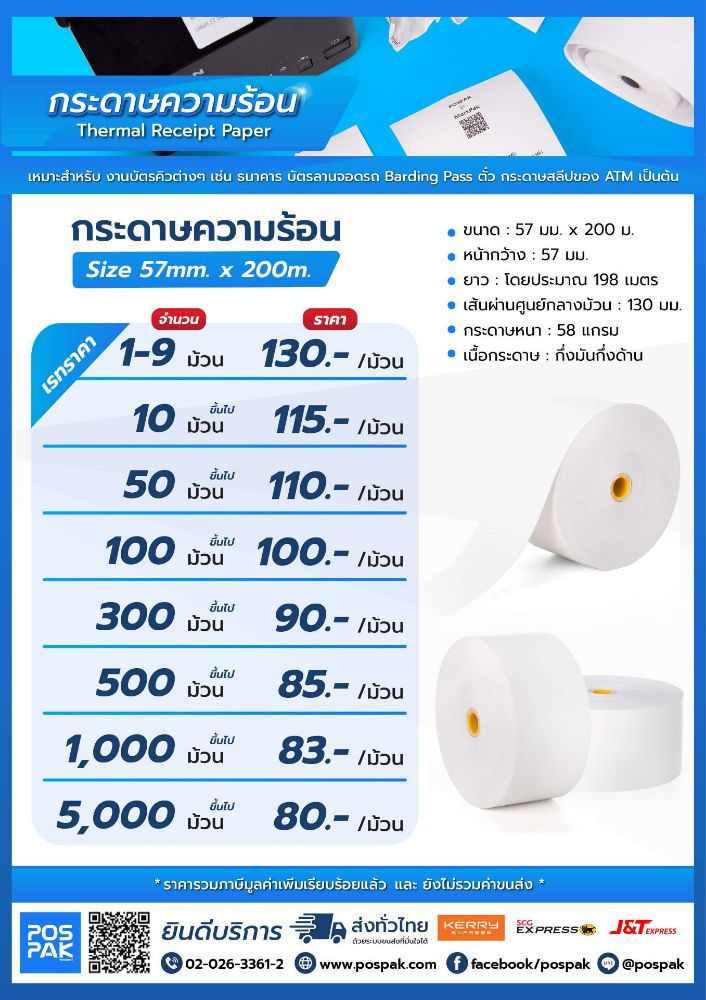 กระดาษความร้อน 80x80 | กระดาษความร้อน 57 mm | กระดาษเคมี | กระดาษความร้อน 57 x 200 |