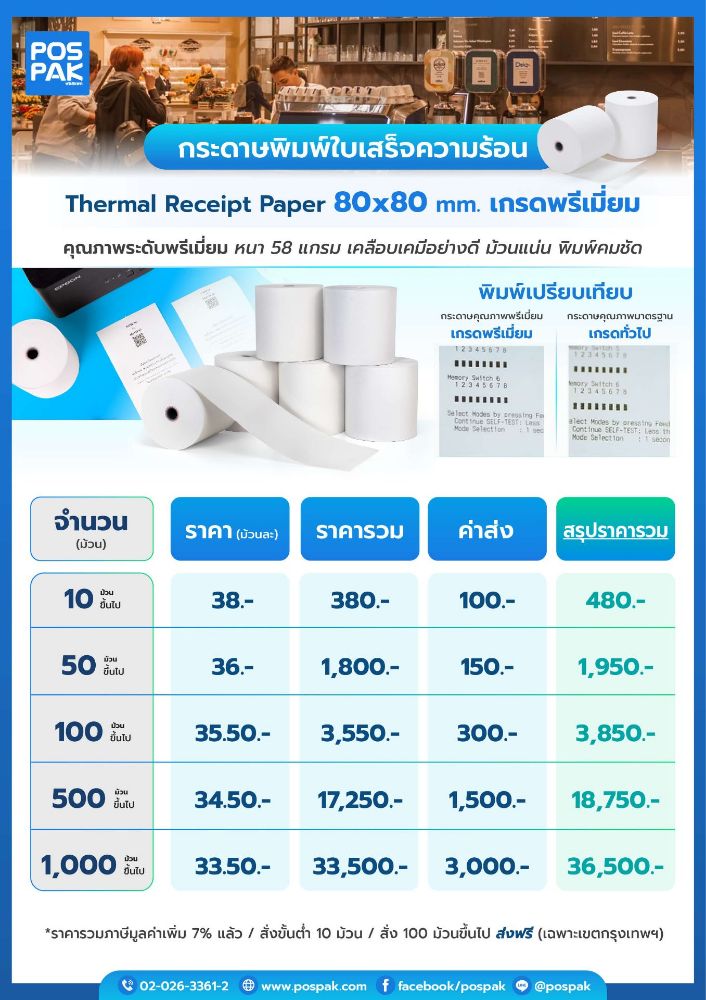 - เทอร์มอล หรือ เครื่องพิมพ์ใบเสร็จความร้อน เครื่องพิมพ์สลิปบัตรเครดิต กระดาษความร้อน (กระดาษเทอร์มอล) จาก พอสแพค เครื่องพิมพ์ระบบ Thermal ชั้นนำ เช่น Epson,Bixolon, Star Mircronics, NEC, Toshiba TEC, Citizen, Casio, Nixdorf, Sewoo, SNBC, Rongta, SPRT, XPrinter, GPrinter, POSBANK