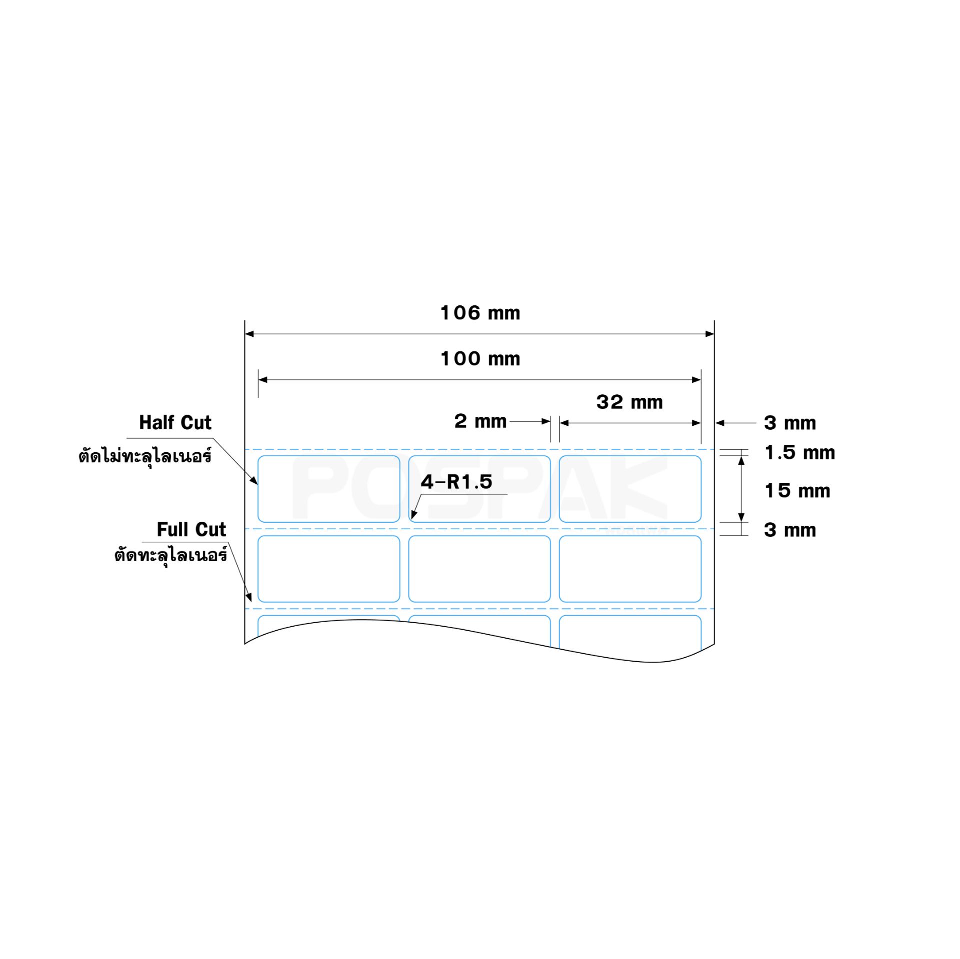 ST.PP Size 32 x 15 mm. (3.2 x 1.5 cm) Sticker 5,000 ดวง/ม้วน 3 ดวงห่าง แกน 1.5 นิ้ว สติ๊กเกอร์เนื้อพลาสติกกันน้ำ (ใช้ร่วมกับ Resin Ribbon หรือ Wax Resin Ribbon)(PN:PP00004)