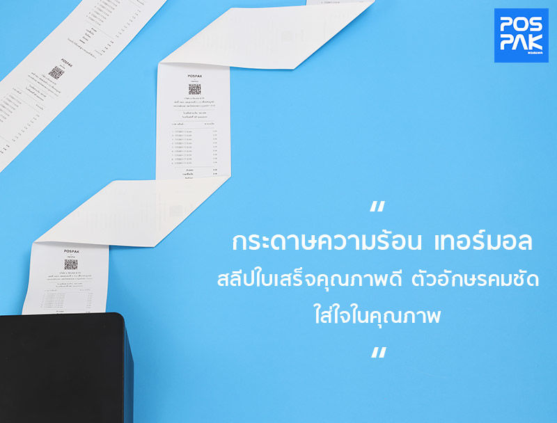 กระดาษใบเสร็จความร้อน Thermal Receipt Paper คือ กระดาษใบเสร็จใช้พิมพ์สลีปใบเสร็จเหมาะสำหรับ ร้านมินิมาร์ท ร้านอาหาร ร้านกาแฟ ปั้มน้ำมัน ลานจอดรถ ธุรกิจไปรษณีย์ สลีปATMบัตรคิวเป็นต้น นิยมใช้กับเครื่องพิมพ์เทอร์มอลหรือ เครื่องพิมพ์ใบเสร็จความร้อน เครื่องพิมพ์สลิปบัตรเครดิต กระดาษความร้อน (กระดาษเทอร์มอล) จาก พอสแพค มีคุณภาพสูง กรอม้วนจากกระดาษเทอร์มอลของ OJI Thermax และกระดาษเทอร์มอลของ mitsubishi กระดาษของเราถูก กรอกเข้าม้วน และสลิตตัดอย่างเรียบร้อย และและบรรจุในถุงพลาสติกสีดำภาพและตัวหนังสือที่พิมพ์จากกระดาษเทอร์มอลของเรามีความ ดำ เข้ม ชัด สามารถเก็บรักษาได้เป็นระยะเวลานานภายใต้การเก็บรักษาที่ถูกต้อง (วิธีการจัดเก็บรักษากระดาษเทอร์มอล) กระดาษความร้อน ของเราเหมาะสมกับการใช้งานกับเครื่องพิมพ์ระบบ Thermal ชั้นนำ เช่น Epson,Bixolon, Star Mircronics, NEC, Toshiba TEC, Citizen, Casio, Nixdorf, Sewoo, SNBC, Rongta, SPRT, XPrinter, GPrinter, POSBANK