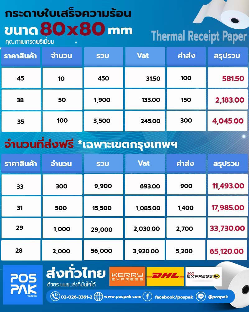 กระดาษเทอร์มอล 80x80mm ราคาส่งเริ่มต้นเพียง 45.- เท่านั้น พร้อมส่งทั่วประเทศ