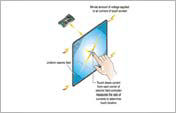 โซลูชั่นส่วนใหญ่ที่อาศัยอินเตอร์เฟซเป็นการสัมผัสแทนการใช้ Keyboard และ Mouse นั้นจะใช้ Touch Screen เป็นอุปกรณ์สำคัญเป็นส่วนประกอบหลักๆ ได้แก่ส่วนของเซ็นเซอร์ที่ตรวจการสัมผัส ของแผงควบคุมที่ทำหน้าที่รับสัญญาณจากเซ็นเซอร์ มาประมวลผลเป็นพิกัดสัมผัสสุดท้ายคือส่วนของ Software, Driver ซึ่งเป็นตัวเชื่อมกับ OS ทำให้ Touch Screen เป็นเสมือนอุปกรณ์อย่าง Mouse ดังนั้น Application ต่างๆ ที่พัฒนาโดนใช้ Mouse เป็นอินเตอร์เฟส (ส่วนใหญ่) ก็สามารถนำไปใช้กับ Touch Screen ได้ทันที อย่างไรก็ตามในการเลือก Touch Screen ที่เหมาะสมนั้นขึ้นกับหลายปัจจัย และปัจจัยหนึ่งที่ต้องทราบคือ เรื่อง เทคโนโลยีของ Touch Screen แบบต่างๆ พร้อมทั้งจุดแข็งและ จุดอ่อนของเทคโนโลยี